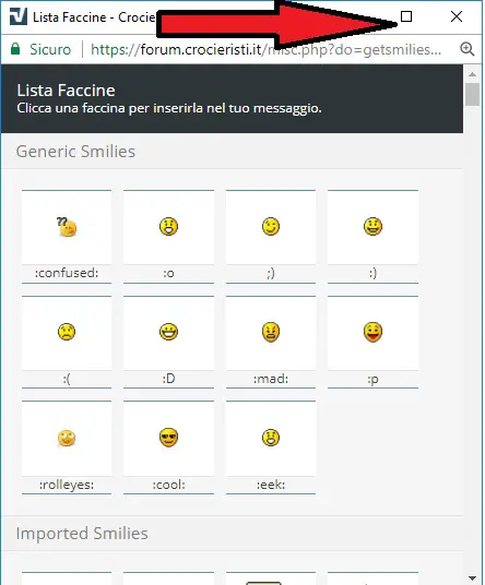 L’emoticon scelta vi apparirà nel testo scritto ed in corrispondenza del posto esatto in cui avrete lasciato il cursore. Ricordate che la Netiquette ci invita a non fare uso smodato di Smilies.